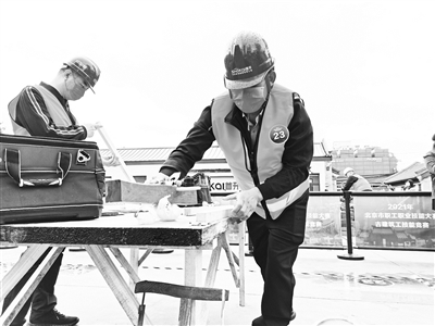 9点30分,天空中依旧飘散着细雨,这样的操作环境,并没给付宝国的比赛造成很大的挑战。仔细阅读完考题,这位来自北京市园林古建工程有限公司的“90后”古建筑工开始了职业生涯中的第一场技能竞赛。近日,作为2021年北京市职工职业技能大赛竞赛项目之一,全市古建筑工竞赛实操决赛在首开房地古建实训中心举行。在决赛现场,包括付宝国在内的70名能工巧匠进行着古建筑“精细活儿”的比拼。