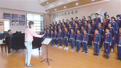 10月18日12时45分,海淀区七一小学的合唱训练厅里传来悠扬的歌声,浪花合唱团的团员们正在老师的指导下认真地排练,为年底的学区合唱比赛做准备。像这样的训练每周会安排四次,通过常年的刻苦练习,孩子们的歌艺日臻完善,还学会了在歌声中享受艺术之美。