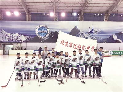 在冰雪运动中,冰球是朝阳区较早引入校园的兴趣课程,而陈经纶帝景分校是最早开设冰球课的。2013年,体育老师安宁把冰球引入了学校的课外兴趣班,一开始条件特别艰苦,因为条件不允许,开设的只是旱地冰球课,就是轮滑鞋在操场上打球,就连冰球杆也是用体操棒代替的,但孩子们特别喜欢,很多孩子都是从那时候开始认识的什么是冰球。“后来,在学校的支持下,2014年陈经纶帝景分校冰球社团成立了,有了真正的冰球装备,每周两次由学校包车到专业的冰场去训练。”安宁介绍,转眼过去8年的时间,这支冰球队已经成为学校的精品社团,在朝阳区、北京市乃至全国的中小学生冰球比赛中取得了优异的成绩,为国少队、北京队、朝阳队输送了大批的冰球队员。