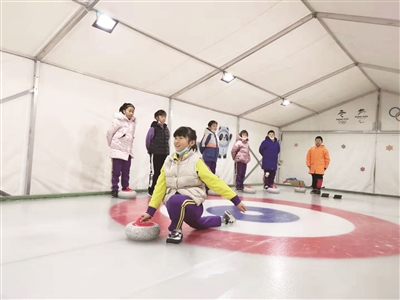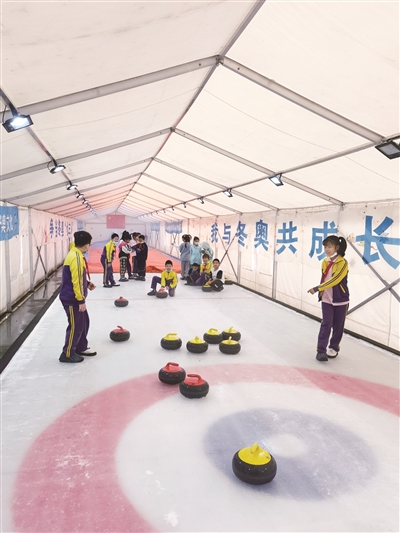 “在校园里面就可以打冰壶啦!我们觉得特别幸福。”孩子们告诉记者。电厂路小学里有一个神奇的白棚子,夏天时,这里是同学们最喜欢靠近的地方。因为这个白棚子里面是学校里的冰壶道,也是石景山区的第一块学校真冰冰壶场。