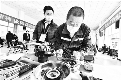 发电机拆装与检修考场内,12名选手正在进行“AVE 2115D型发电机总成的拆装与检验”项目考核。选手们娴熟地对角预松发电机调节器固定螺栓,用尖嘴钳子拆下调节器内的四根导线线尾、搭铁回路线和碳刷;将前端盖放置到发电机底座上后,对定子线圈进行拆除,对发电机内部碳刷、调节器、后端盖轴承孔及整流桥、定子绕组、前端盖转子爪极及滑环等零部件进行清洁检查……“不能单单比速度,更要看操作工艺、零件清洁、组装精密度等8项考核项目,要不然一步安装错误就会更加耽误时间。”来自本次大赛初赛理论考试第一名的保修三厂选手孙宝介绍。