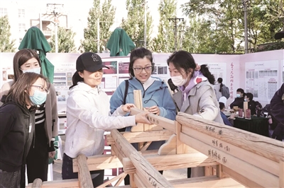 “一麻五灰”是传统油漆作13道工艺的统称,砍净挠白、撕缝、织浆……“工匠营”油漆作的学员,向大家展示介绍了传统油漆作地仗“十三道”工序。一组按14比例缩小的中式七檩三开间建筑模型也广受关注,通过这组精美模型,不但可以直观了解传统建筑构造、构件间尺寸关系,组装搭建的过程更是寓教于乐,给现场观摩的职工带来了动手的乐趣。