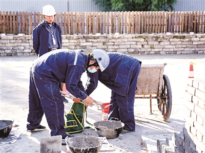 “为了培养更加专业的古建工艺技术人才,把控好老城风貌保护修缮工作,我们组织成立‘技委会’‘工匠营’,以线上线下结合的方式,讲授瓦、木、水电维修、油漆彩绘、古建测绘等5大类课程,聘请老师现场教授传统技艺。同时,我们还积极探索校企合作等新模式,为推进北京历史文化名城保护,推动和谐宜居之都建设提供坚实助力。”京诚集团工会相关负责人介绍说。京诚集团组建专业授课为主的“工匠营”,2017年红军营实训基地、2021年在清华寺实训基地开展了两次培训,截至目前已有5100多人次的职工参与培训。