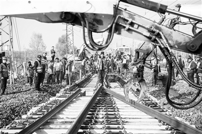 10月26日,记者从中国铁路太原局集团有限公司了解到,我国运煤大动脉大秦铁路秋季集中修接近尾声,即将恢复高位运行。每年春、秋两季,大秦铁路都会迎来为期25天左右的“体检”。“体检”期间,全线路每天停运3小时,工人会进行更换伤损钢轨、夯实道床、清理淤积物等20余项施工作业。为保障能源运输稳定,中国铁路太原局集团有限公司紧盯施工期间大秦铁路日运量100万吨目标,确保检修保供两不误。图为施工人员在大秦线39km+300m处作业。新华社发