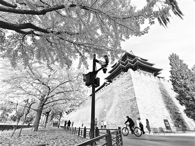 正值深秋时节,昨天,记者在北京故宫筒子河畔看到,金色的银杏叶映衬着角楼、宫墙,沿着河岸一路漫步其间,古都的秋韵尽收眼底。