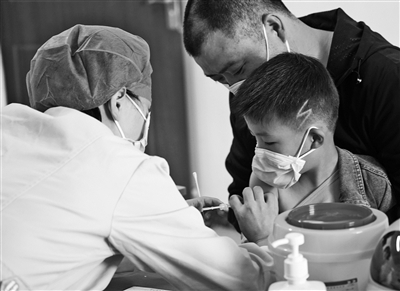 11月3日,医务人员(左)在南昌市第四医院为小朋友接种疫苗。近日,江西省南昌市全面启动3到11岁人群新冠疫苗接种工作。