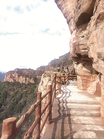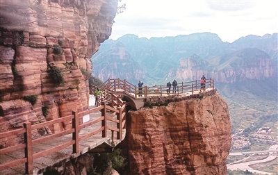 到东太行旅游,是一位“驴友”特别推荐的,说那是一处修建在海拔千米绝壁悬崖上的栈道,堪称“太行山奇观”。其山脉地质特征与著名的美国科罗拉多大峡谷相似,同属丹霞地貌。寻游于此,可体验一种凌空而游的惊险与刺激,于是欣然前往。