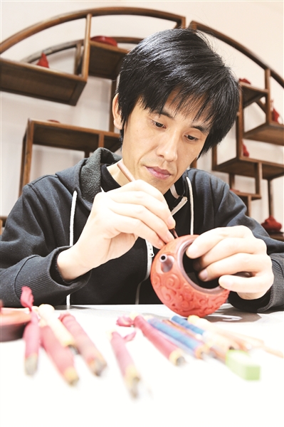 “一生一掷,一执一生,可谓‘匠’。我非常庆幸能跟随大师进入到雕漆行业,并有幸能参加很多顶级作品的雕漆创作。从大师和师兄的身上,我看到了真正的工匠精神。”赵海伟说。对于未来,他希望能够继续以梦为马、以身为梯、以刀代笔,传承技艺,为振兴雕漆这门无可替代的中华传统工艺,不断贡献自己的力量。