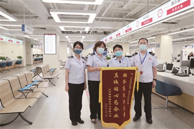 近期,写有“服务高效办实事,真诚贴心为企业”的锦旗送到了丰台区政务服务中心税务专区。像这样的锦旗,丰台区政务服务中心税务专区经常会收到。“以往,股权转让业务是最让企业头大的业务。股权转让智能预审系统的推出,使‘老大难’业务一下便捷起来,为纳税人特别是我们中小企业解难救急,优化了涉税流程,促进了企业的蓬勃发展。”北京西南物流中心的办税人员说。