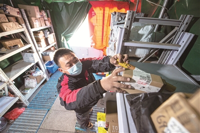 11月11日,清晨5:30,天还没亮,北京的室外温度逼近零摄氏度。张国安穿好工服,洗漱完毕后,驱车来到位于北京体育大学西南门外的快递收发大棚,这里是他的工作地点。
