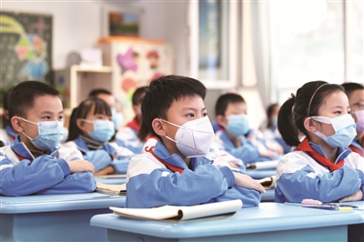 11月15日,青海省西宁市12所小学复课。此前,各校已对校园进行了全面消杀,确保不留死角。复课后各校将实施错时到校和弹性离校制度。此前,受疫情影响,西宁市多所学校紧急停课,开展线上教学。图为西宁市城西区胜利路小学,学生在学校上课。 新华社发