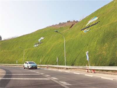 石龙路匝道是由阜石路进入北京冬奥组委和首钢滑雪大跳台必经之路,石景山区日前对该处匝道进行了整体绿化和景观提升,形成总面积3万余平方米的“城市盆景”。图为车辆从刚刚提升景观的石龙路匝道通过,沿路护坡上镶嵌着北京冬奥会、冬残奥会会徽,营造了浓厚的冬奥文化氛围。