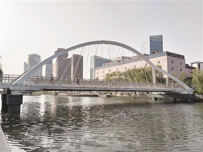 这个规划,着实令人鼓舞,也十分期待。眼下亮马河的亮丽景象已经初步展示在世人面前。我发现,从燕莎桥开始沿着亮马河边散步,真是一种涤荡心灵的享受。沿途是葱郁的灌木、油柏;低平的岸坡堤上长着茂密的水生植物;精心打造的蓝色小桥,像一条蓝色丝带,系在亮马河上;随处可见的亲水平台,让游人随时可以停下脚步去近距离观赏和拍照。舒缓的河水、成片的绿荫和岸边的高楼大厦,形成风格统一、浑然一体的景观廊道。