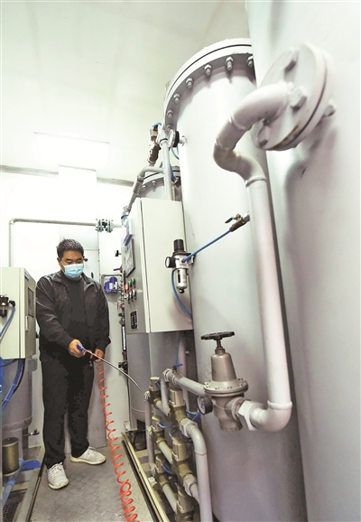 在大运河的治理中,高科技手段正在大显身手。在通惠河八里桥管理站,一套超饱和稳态溶氧装置24小时不停地运转。河水通过提升泵进入超饱和稳态溶氧装置处理后,水中溶氧增加,再流入河道,可以显著改善水质。工作人员告诉记者,目前上岗的两台设备,日处理水量能达到2.5万立方米。进入设备前,水溶解氧浓度只有5mg/L左右,经过处理,能提升到25mg/L以上,河流的自净能力得以提升。