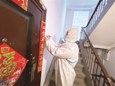 社区工作的经验让殷嘉的志愿者工作如鱼得水。“您好,我是社区防疫工作者,请问您和家人是否都进行了核酸检测?”“您好,居家隔离也别忘了注意防护。”礼貌的敲门、隔门的询问,一家一户地登记,耐心地为居民讲解防疫政策,殷嘉把本职工作中积累的技巧和知识灵活地应用在志愿者工作中。