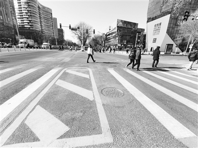 记者昨天在刚刚改造完工的三里屯太古里门前的十字路口看到,地标性十字路口经过数月改造后,行人、自行车和汽车各行其道,路线更加清晰。重新施划的斑马线采用了立体式样,宽度从4米拓宽到了8米,地上专门为非机动车施划了600平方米的专用车道。监测显示,行人过街效率提高50%。本报记者 孙妍 摄影报道