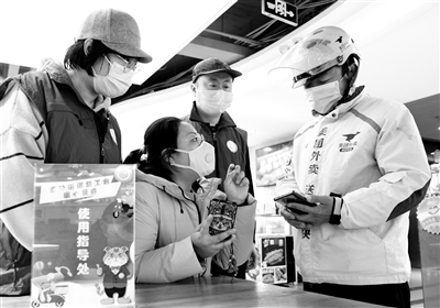 近日,东城区崇外街道总工会与搜秀美食城联合开设了六家“暖心餐厅”。外卖员、快递员、保安员等职工来此就餐,可享受每份餐食6元的优惠,其中价格最低的仅8元一餐,受到职工的欢迎。图为职工在就餐前兑换优惠券,凭券就餐。 万玉藻 摄影报道