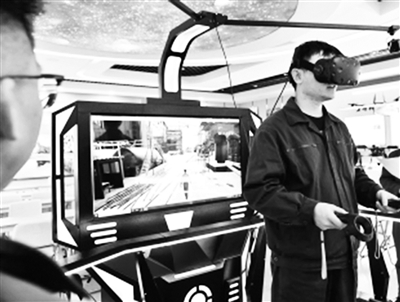 11月29日,国网衡水供电公司输电专业员工正在利用VR技术进行安全教育专业培训。该公司变宣讲式的安全教育培训为智能化、基于大数据的反违章精准培训,通过数字建模和VR成像技术,达到虚拟中交互操作,提升受训者的感官体验。(12月1日《河北工人报》)