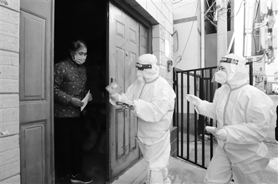 “亲爱的村民朋友们,由于您现在居住的村被列为全封闭管控村,给您带来了诸多不便,对此深表歉意,希望你们积极配合我们,做好疫情防控……”在石牌坊村口,身着白色防护服的工作人员一遍遍地向村民们播诵着《致十三陵镇石牌坊村村民朋友的一封信》,传播防疫知识。村民们在工作人员的引导下,有序排队,依次进行核酸检测。