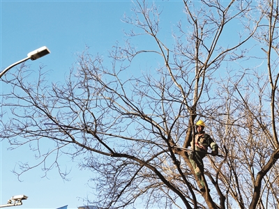 昨天是二十四节气中的大雪,正是冬季树木修剪养护工作的最佳时节。记者昨天在宣外大街看到,园林工人正忙着对树木进行修剪,以改善树木的通风透光条件,解决挡光、影响交通等问题,还能够有效防治病虫害,让树木来年更好地生长。