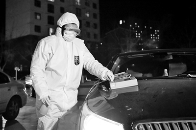 12月7日,在满洲里市湖滨小区,水务公司工作人员王宝强为居民充值水卡。内蒙古自治区满洲里市的夜晚,有许多人坚守在疫情防控一线。他们不惧寒冷,在不同的岗位上释放着“光与热”,为防控疫情作出自己的贡献。