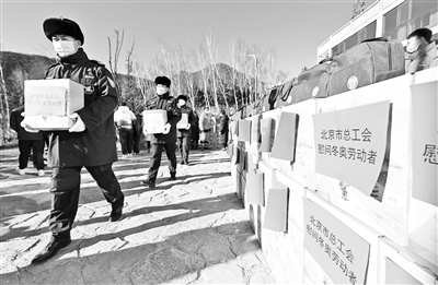 本报讯 (记者 白莹) “室外的气温虽低,但工会送来的关爱让我们感到暖暖的。我们一定继续保持昂扬的奋斗姿态,以最饱满的工作热情迎接北京2022年冬奥会和冬残奥会。”12月13日,北京冬奥会延庆赛区核心区的京奥临时办公区广场上,场馆服务团队成员高子超接过慰问品时说。