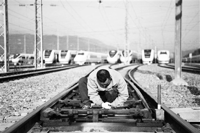 老谭做什么工作都会跟安全扯上关系。比如,他带领我们到区间干活,给设备标号时,红油漆必须紧贴字母模具,并且喷的时候要不多不少,喷完赶紧撤掉模具,保证符号清晰直观。如果边界上多了一滴油漆,老谭都会用白油漆一层一层覆盖,再叫我们重新喷好,说必须保证让任何人在几百米外的地方都能准确辨别出公里数。
