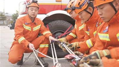 面对失足跌入谷底的驴友,他迅速搭好绳索救援系统,毫不犹豫地下到谷底,接近并营救被困者;面对被洪水围困的受灾群众,他冲锋在前,带领战友在肆虐的洪水中开辟生命通道;面对烈火浓烟,他勇敢无畏,一句“别害怕,跟我上”总能让战友感到欣慰和踏实;面对复杂的交通事故,他镇定自若,指挥大家用最简洁有效的方式解救被困者……