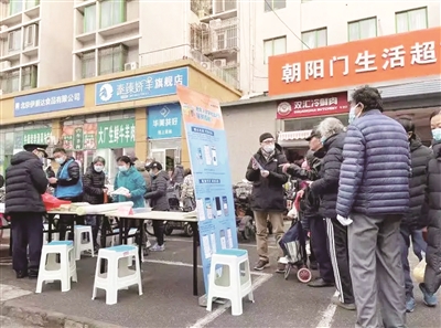 北京东城区朝阳门街道举办社区公益日,志愿者将《老年人数字化出行服务指南》送到社区老人手中,并现场指导老人如何使用手机打车。