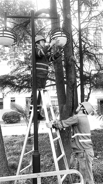 听到这个外号,老杨扬起一双浓眉,眯着眼睛,哈哈一笑。然后卷起袖子,搬起一架人字梯走到路灯下,展开、固定好,招呼小刘帮他扶着,拿着螺丝刀“噔噔噔”爬上去,三下五除二就把灯罩卸了下来。老杨从工具包里掏出干净纱布里里外外擦拭干净,麻利地装回去,又用手试试紧固程度,确定安装到位了,这才下来,扛起梯子检查下一杆路灯去了。