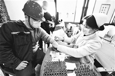12月17日,安徽省阜阳美康健康体检检验中心医护人员在“流动体检大巴”为劳动者体检。连日来,该体检检验中心联合昊源化工集团有限公司开展“关爱劳动者、企业来买单”活动,将“流动体检大巴”开进工厂,为劳动者免费体验。(12月20日《工人日报》)