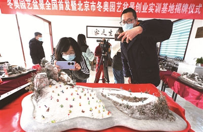 12月27日,延庆区人力资源和社会保障局联合北京市盆景协会,举办了冬奥园艺盆景全国首发暨北京市冬奥园艺盆景创业实训基地揭牌仪式。当天,在盆景大师丛小华工作室,市民零距离欣赏冬奥园艺盆景。盆景由丛小华团队制作,表达“以有限变无限”的冬奥故事。