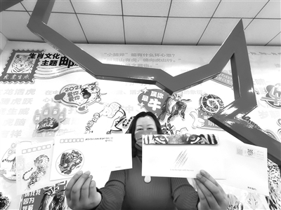 12月28日,位于西城区牛街的北京生肖文化主题邮局和“集邮者之家”迎来周岁生日,中国邮政特别推出《中国大猫》系列首枚邮资机戳之“虎虎生威”,并在生肖文化主题邮局发行,贯穿2022整个年度,倡导全社会对环保和生态的关注。当天,北京生肖文化主题邮局还首发两枚周年庆典纪念封。本报记者 孙妍 摄影报道