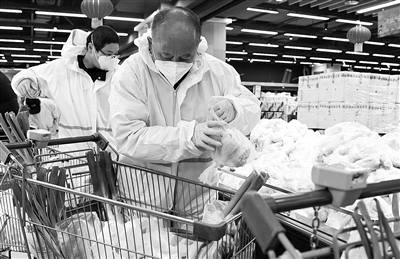 28日23时30分左右,记者在曲江新区的一家大型超市看到,七八十名社区工作者和超市工作人员正在连夜分类、打包。据介绍,曲江新区共统筹四家大型超市和一家农贸市场提供货源,为全区13万户居民准备了数百吨肉类、鸡蛋、蔬菜。