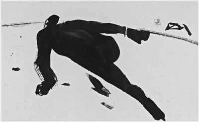 杨刚自上世纪90年代开始进行墨象练习,对于日本、韩国现代书法,包括墨象派、少字数书法等的关注,启发了他进行表现性水墨和实验水墨作品的探索。自2000年以来,杨刚根据电视节目创作了大量冬奥题材作品,创作工具不拘一格,既有毛笔、马克笔,也有签字笔乃至圆珠笔,他在各类纸上创作的速写和水墨,千姿百态,不动不写。