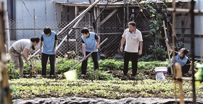 “哎呀!我好像刨着红薯了,太棒了!”项目部的菜园子里,几个姑娘在职工带领下,开心地体验着农家生活,第一次在田间地头刨起红薯。菜园子是项目部为改善职工生活,专门腾出的一小块自留地。项目书记谭彬杰在这里种下了辣椒、茄子、扁豆、西红柿等十几种蔬菜。这些无公害蔬菜一茬儿一茬儿长起来,都到了职工食堂大家的餐桌上。听到“咔嚓”一声,再听孩子们说锄头刨到了红薯,捐款时眼睛都不眨一下的谭彬杰脸上扭曲了一小下,露出了不易察觉的心疼之色,他赶紧调整表情,接过锄头示范起来:“这么弄,轻轻的一点一点的……”大家在一起像家人,也像朋友。