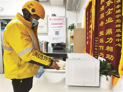 “别看我们这个暖心驿站小,起了大作用呢!”东高地街道辖区航天万源商务楼宇党群服务中心工作人员徐素群说,暖心驿站设立在航天万源商务楼宇党群服务中心一个小小角落,桌椅、微波炉、饮水机、冰箱、应急药箱、雨衣雨披、防疫物资一应俱全,“楼宇里的职工中午有过来热饭的,雨天过来借用雨伞的,还有来给自行车打气的,路过的快递、外卖小哥会来暖心驿站喝口热水,歇歇脚的。有时还有职工过来借口罩的,借针线盒、创可贴的……总之,暖心驿站虽小,但是服务项目多,非常暖人心!”徐素群说。