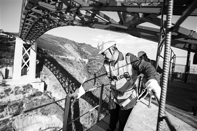 今年28岁的施鹏彬是昆明铁路局普洱基础设施段工务维修技术中心的一名桥隧工,日常工作是对中老铁路控制性工程元江双线特大桥进行检修。元江双线特大桥长约832米,最高的3号桥墩达154米,相当于50多层楼房的高度。红色钢桁梁飞架在灰白的桥墩上,远处望去,跨越元江的大桥在群山间格外壮美。