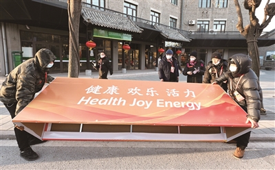 为预防各类突发事件,在应急处置上,活动景观组做到了“一园区一预案”,且每个园区都配备了10至30人不等的应急队伍。这些工会干部使出了 “绣花功夫”,提前在温度较低、风力较大的延庆区对物料进行测试,对不合格的及时进行更换,确保物料经得住恶劣天气考验。邵英男介绍,应急预案起到了重要作用:由于天气预报有大风天气,2月4日下午进行的大运河火炬传递需要调整线路并进行景观布置,最终所需要的60面道旗和15个A字板,都实现了顺利从其他园区物资储备中紧急调用。