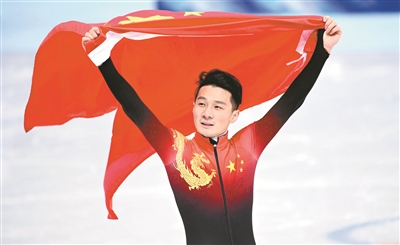 2月7日,在首都体育馆举行的北京2022年冬奥会短道速滑项目男子1000米决赛中,中国选手任子威夺得冠军,李文龙获得银牌。这是本届冬奥会中国代表团获得的第二枚金牌。图为任子威在比赛后庆祝。 新华社发