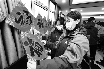 节日期间,中建二局江苏分公司南京绿洲保障房项目工会特邀来自中国书法家协会的书法家走进生产一线,为广大职工写春联、送礼包。该项目工会还通过赠送流量包、共做家乡菜、轮值调休等形式,让坚守一线的职工们过个暖心年。本报记者 马超 通讯员 娄森 摄影报道