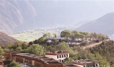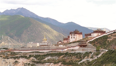 桑披岭寺建在县城边上的巴姆山上,站在这里可以看到乡城的全貌。桑披岭寺在康巴藏区享有康巴第一寺的殊荣,据说建寺时,工匠们不需要设计图纸,他们都是凭借感觉和经验来修建寺庙,这就是一绝。