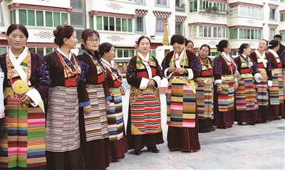 告别了巴登活佛,我继续开车去县城。到了县城突然看到街上有人穿着节日的盛装,这是怎么回事?我急忙打听,原来,今天晚上在广场上有灌礼节的彩排!乡城把每年收获季节以后的粉刷白房子,定为白色灌礼节,这一天,人们穿上了节日的盛装载歌载舞,成为乡城特有的民俗节日。