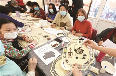 这边的居民抱着冰墩墩毛绒玩具不愿撒手,那边的居民已经开动,用红豆、绿豆、大米等做起了冬奥五谷画。家住护国寺的王阿姨一边做一边说,“我们这届冬奥会和冬残奥会的吉祥物设计得好,既大气,又有中国特色。它们不仅成了联系我们与国际友人的使者,还鼓舞了各国健儿在赛场上拼搏。尤其咱们中国队,表现可太好了,9块金牌,那可是创造历史了。”