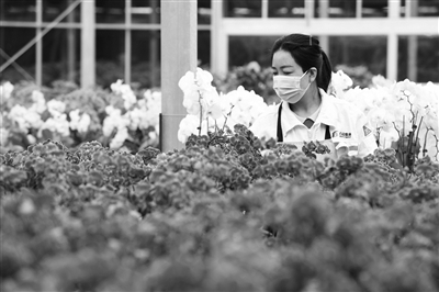 初春时节,甘肃省临夏回族自治州和政县室外最低温度虽然仍低至零下十几摄氏度,和政县三合镇石虎家村的一家现代花卉产业园却通过智慧农业技术,让园中呈现“春未暖花已开”的景象。近年来,当地大力推进智慧农业建设,打造花卉数字农业示范园,采用智能控制系统、加热系统、补光系统等先进设备,通过高新技术及管理模式,开展以蝴蝶兰、高山杜鹃为主的盆花工厂化生产。据介绍,各类盆花年产300多万盆,产业带动当地500多名劳动力就业,有效增加群众收入。图为工作人员对花卉进行日常管护。 新华社发