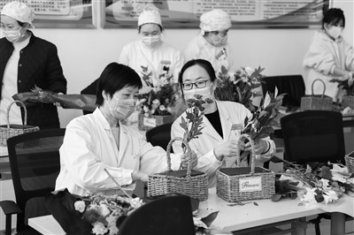 近日,怀柔区中医医院工会连续两天开展了“学插花 庆三八”活动。活动中,女职工从选花、裁剪、颜色搭配、造型等多方面进行交流与探讨,充分发挥想象力和创作力完成精美的作品。此次活动,让女职工们感受到插花艺术的魅力,享受花艺带来的快乐。