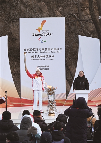 3月2日,在北京冬残奥会城市火种汇集过程中,来自各行各业的火炬手参与了火炬传递。火炬手们表示,将弘扬勇于拼搏、自信自强精神,传递和平、健康、包容、平等,明天更美好的理念。