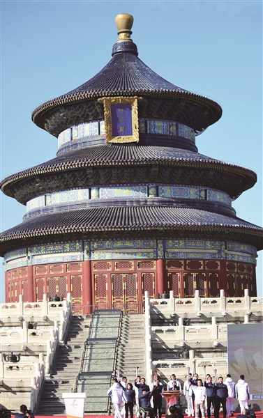 夏奥之火——采集自天坛圜丘。中国残疾人艺术团团长、中国特殊艺术协会副主席邰丽华手持采火棒,遵循古希腊传统的火种采集方式,使用凹面镜采集太阳光,成功引燃采火棒采集到的最后一路火种——夏奥之火,象征着北京“双奥之城”的独特魅力。