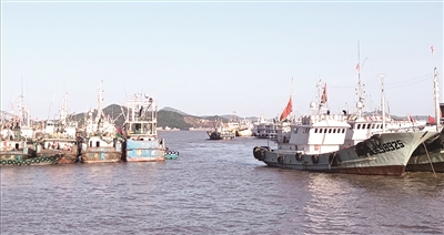 沿着滨港路漫步,向南近观,风平浪静中的沈家门渔港格外繁忙。