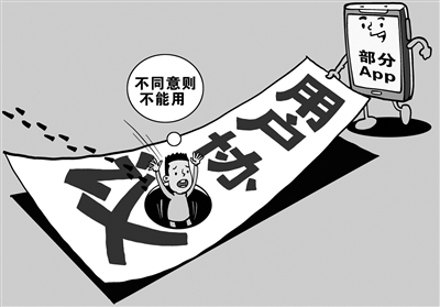 移动互联网时代,App成了人们的必备工具。首次下载使用时,点击“我已阅读并同意用户协议和隐私政策”是常规操作。这些协议动辄上万甚至数万字,长度堪比一篇论文,相关调查显示,近80%的用户很少或从未阅读。(3月14日 新华社)□朱慧卿